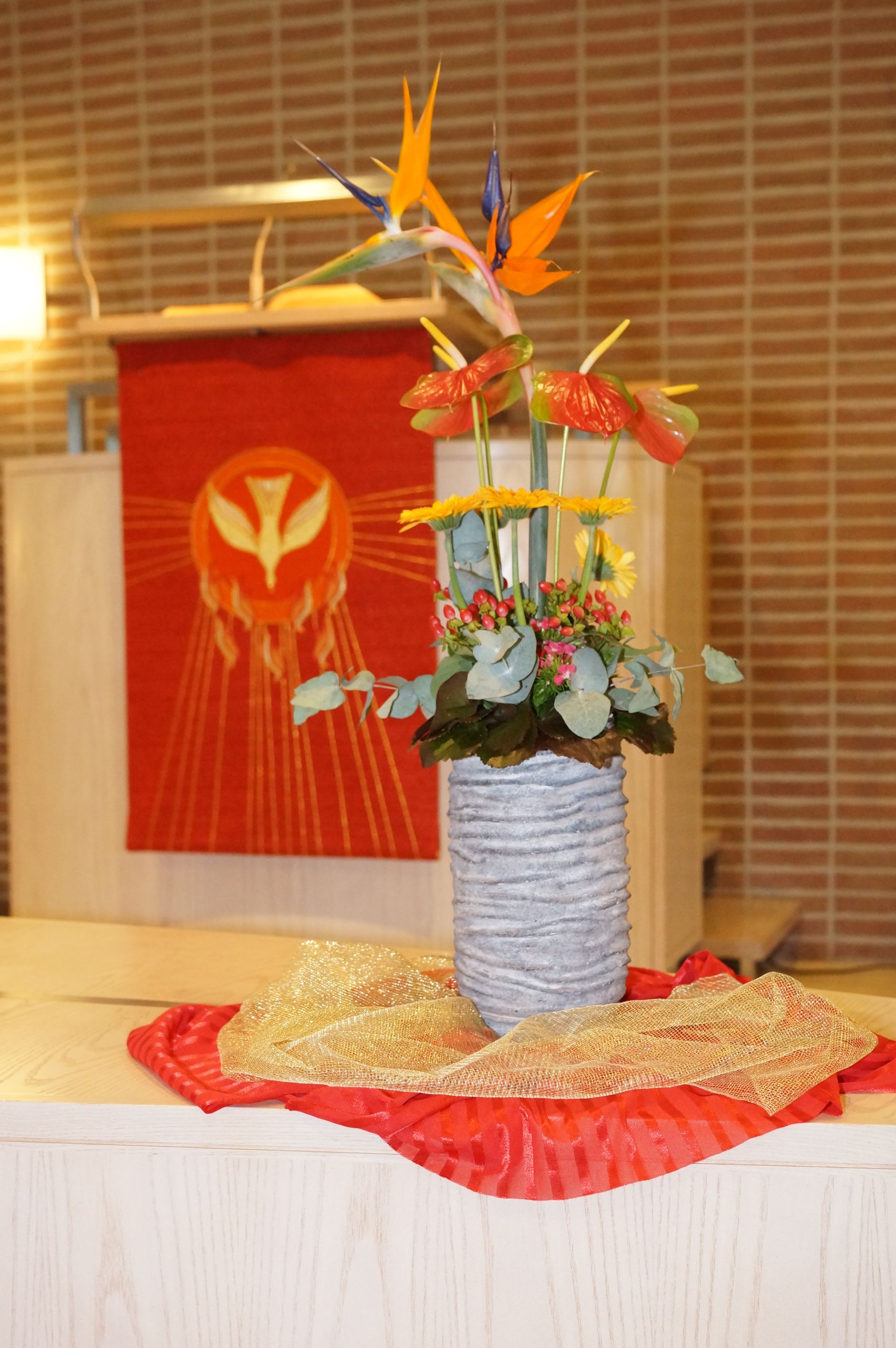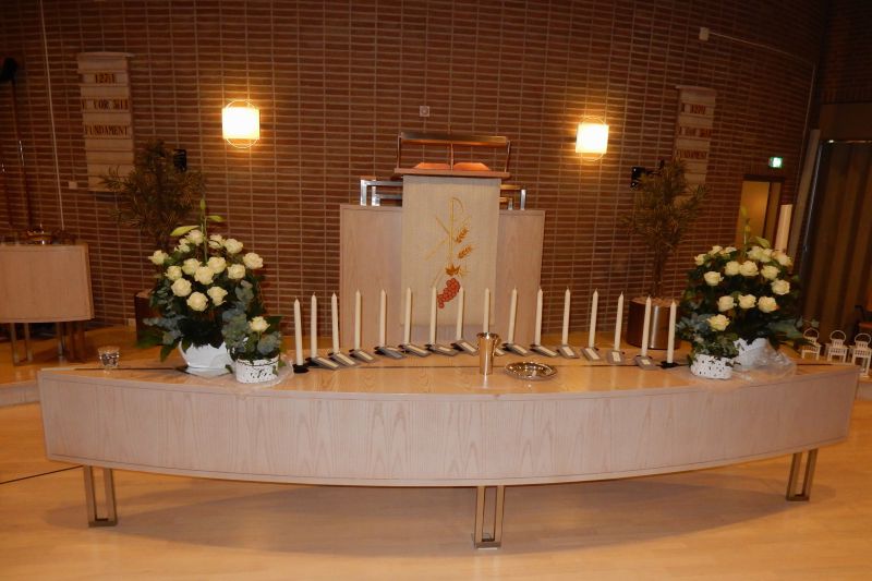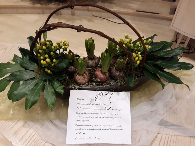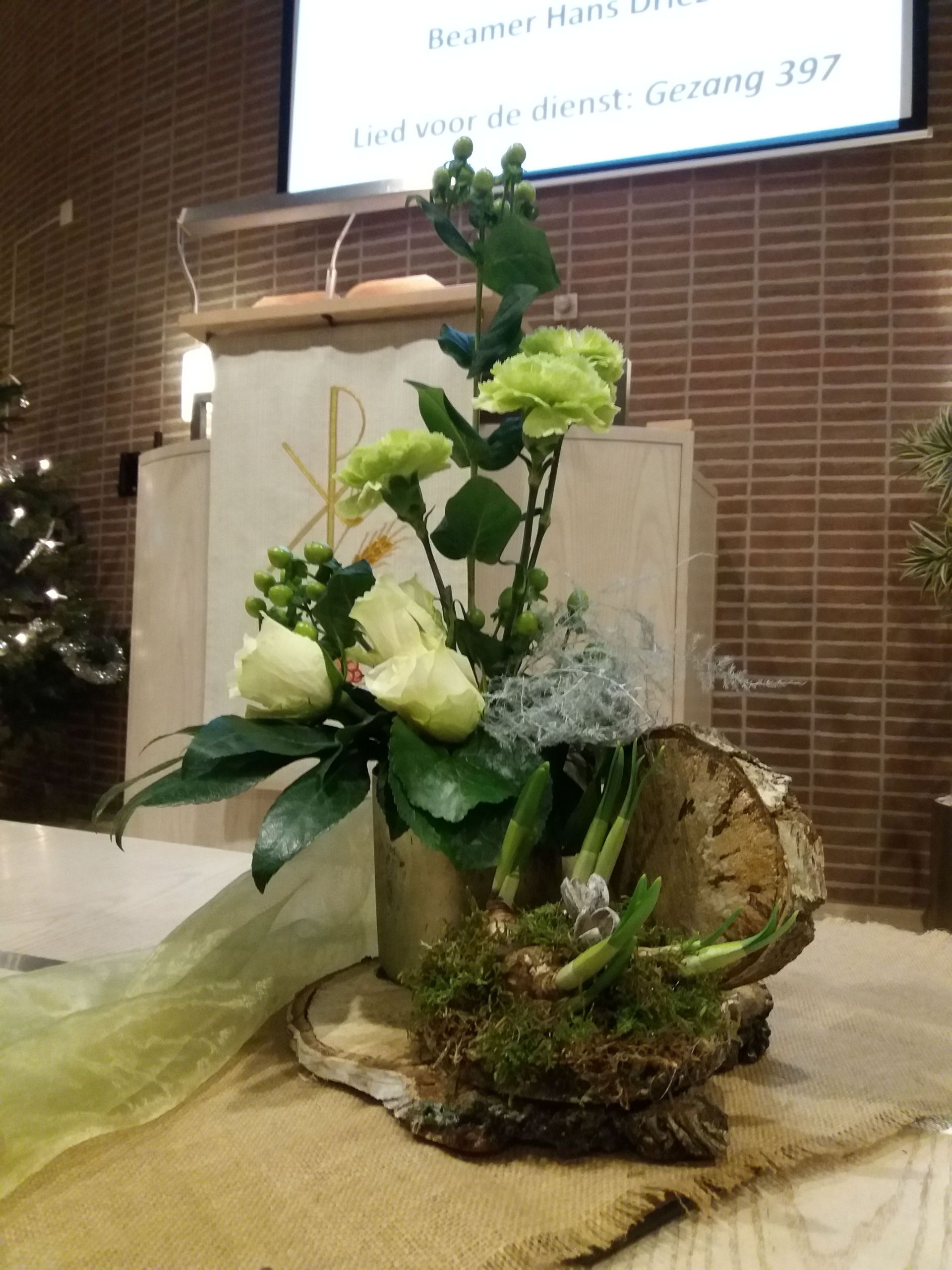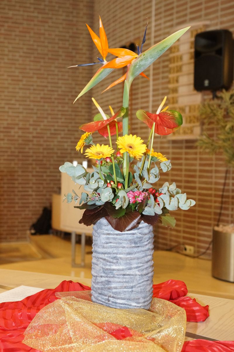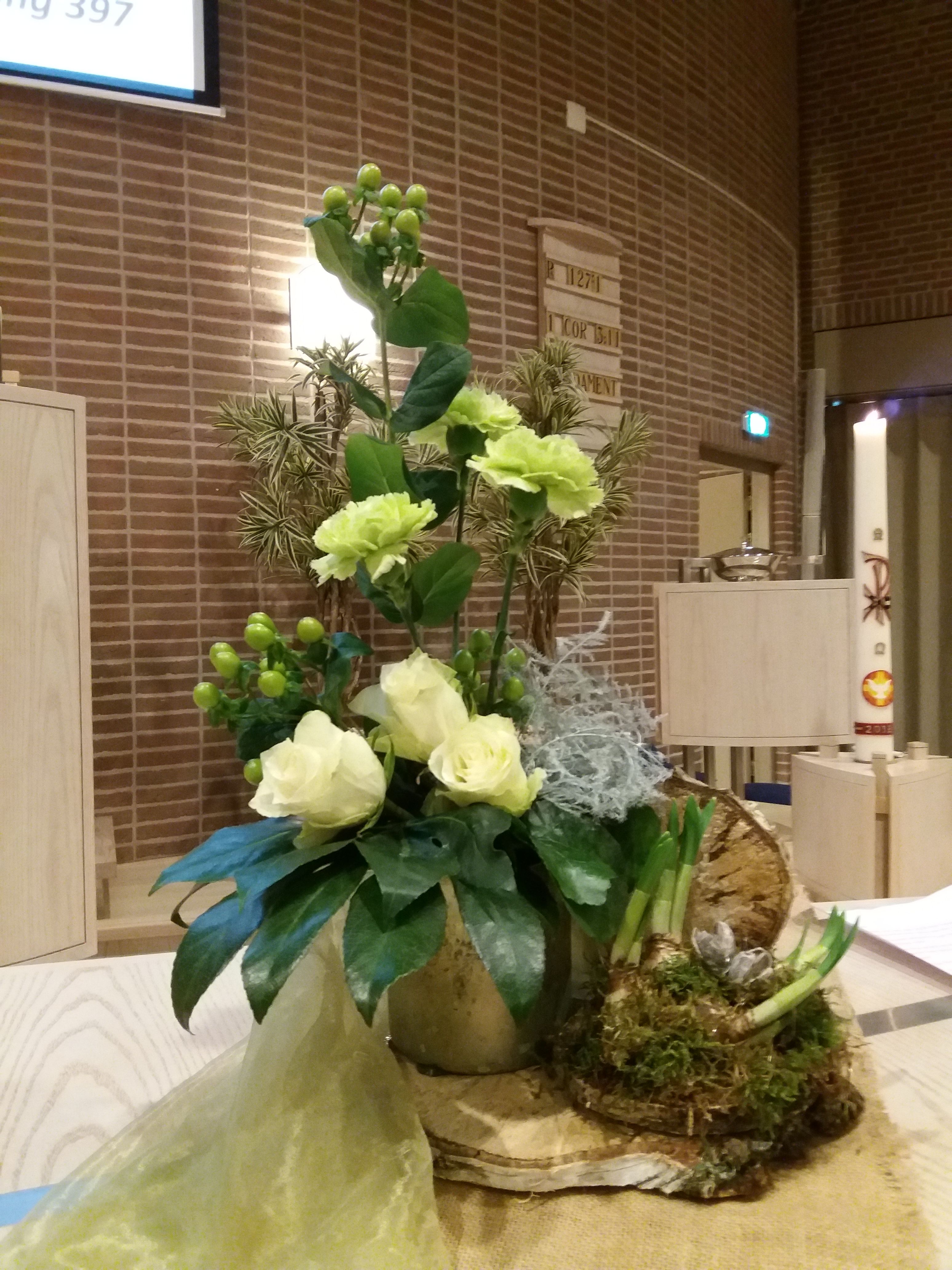 Elke zondag staan er bloemen op het liturgisch centrum. Maar bij een aantal speciale diensten worden zogenaamde ‘liturgische bloemstukken’ gemaakt, waarin veel symboliek wordt verwerkt. Omdat elk liturgisch bloemstuk een kunstwerk op zichzelf is, tonen wij ze op onze website. De bloemstukken worden gecreëerd door de kundige handen van Jannie van der Stouw en Gre Bruins, die geregeld worden bijgestaan door Geertje de Graaf.
