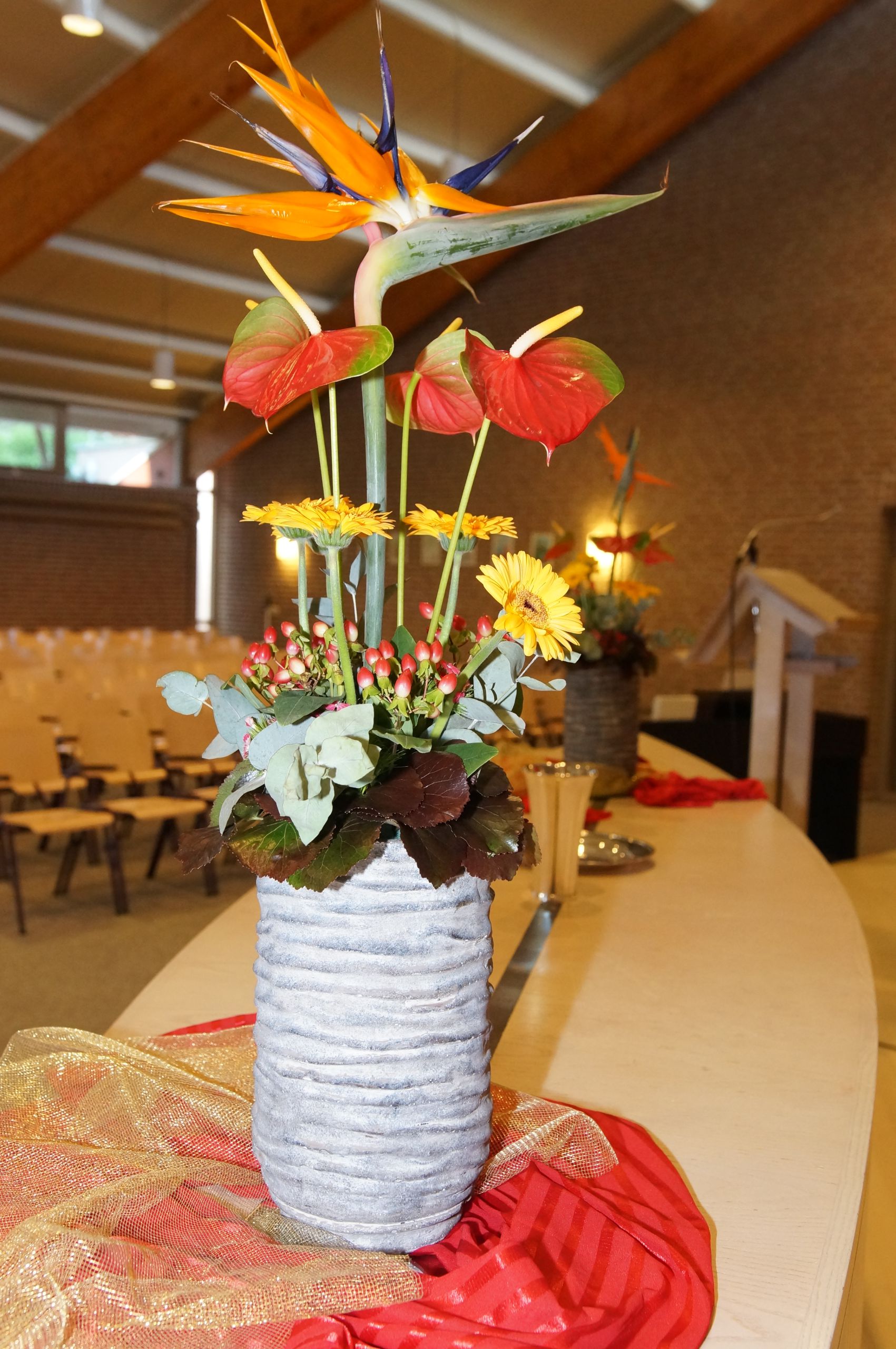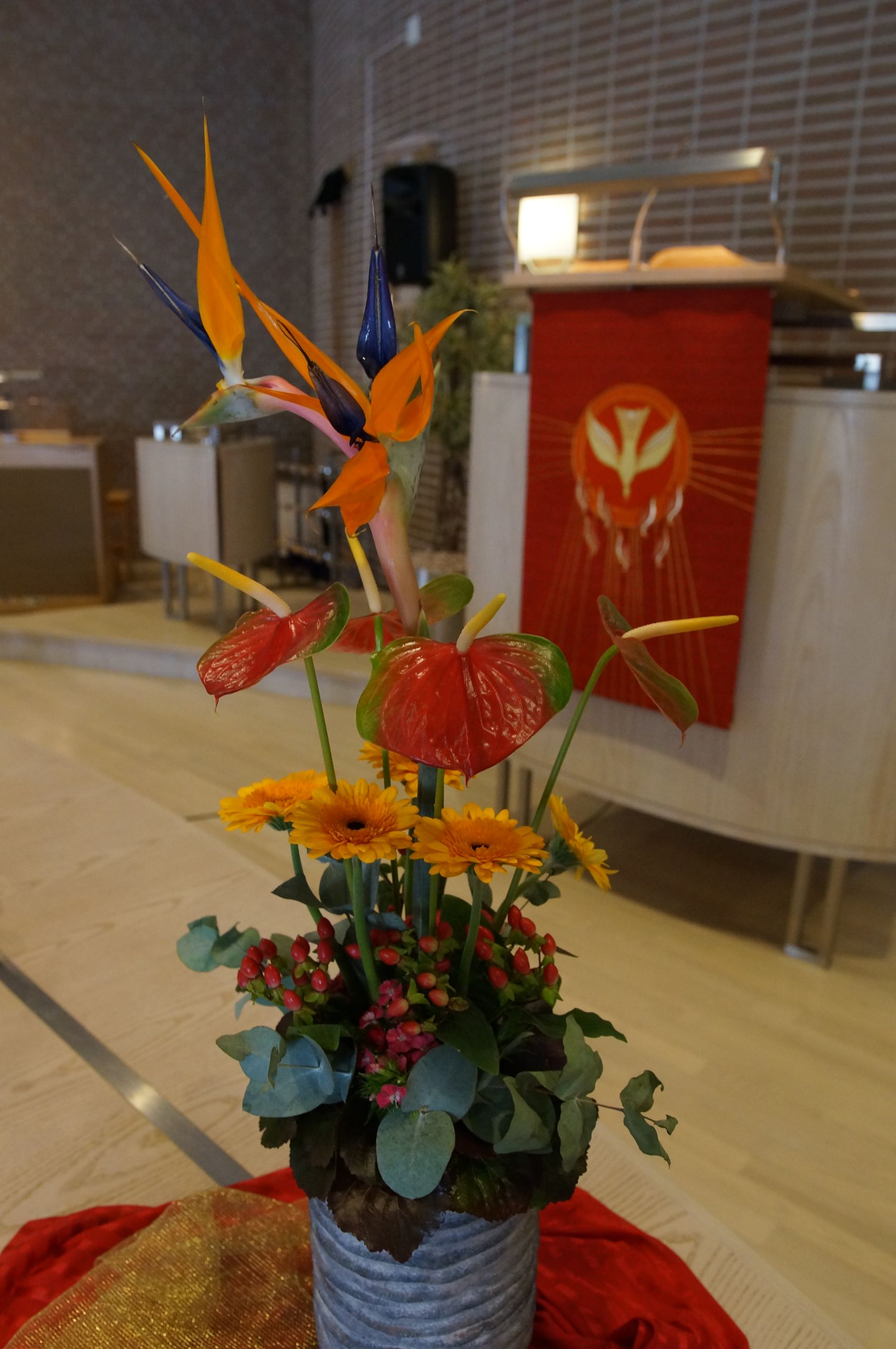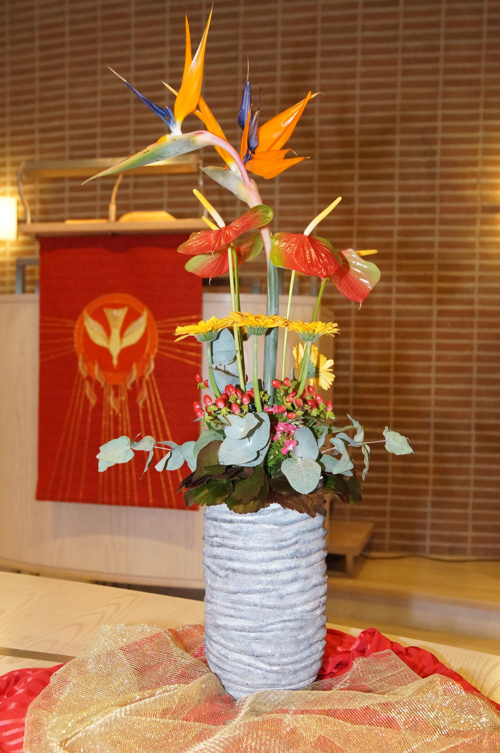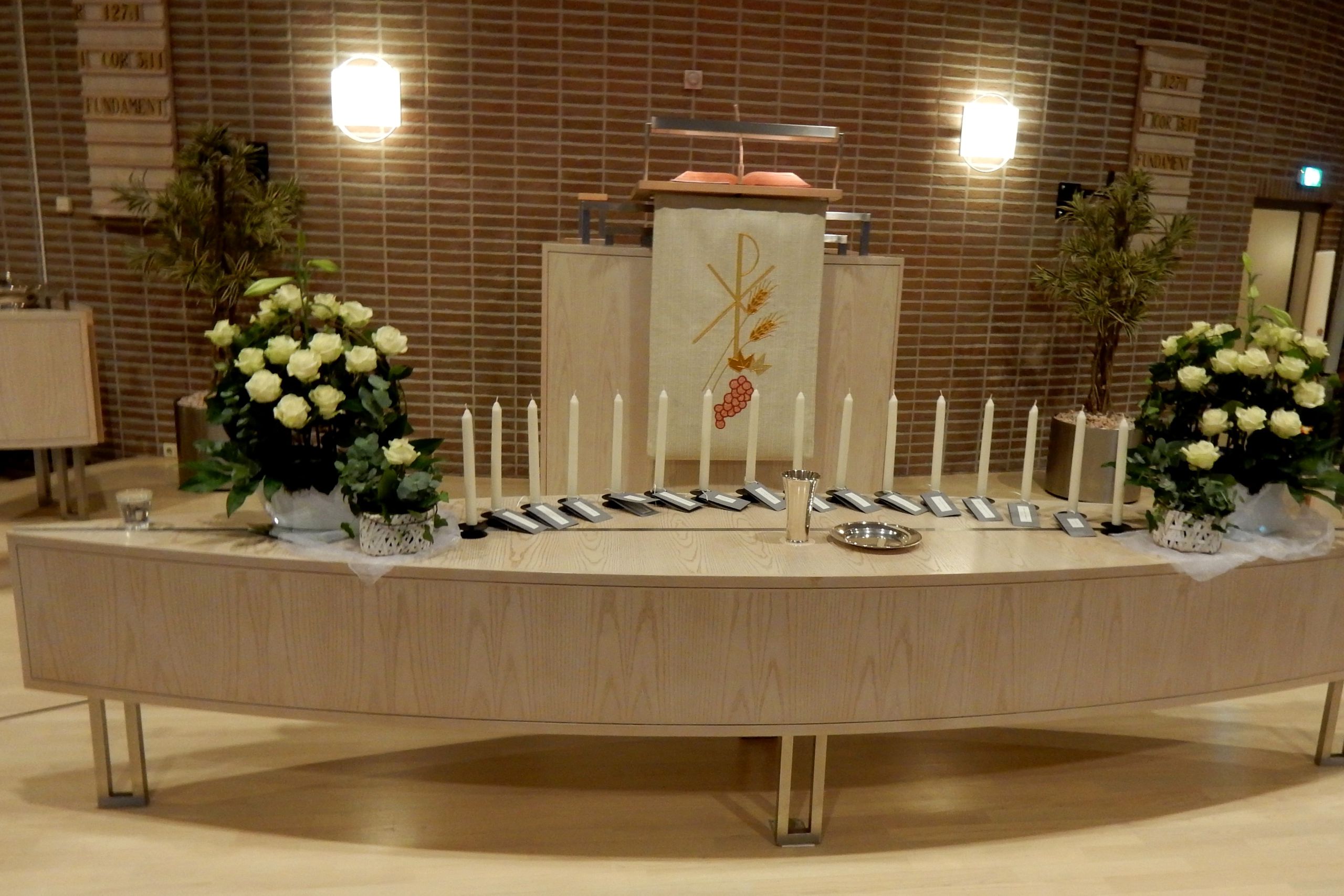 Elke zondag staan er bloemen op het liturgisch centrum. Maar bij een aantal speciale diensten worden zogenaamde ‘liturgische bloemstukken’ gemaakt, waarin veel symboliek wordt verwerkt. Omdat elk liturgisch bloemstuk een kunstwerk op zichzelf is, tonen wij ze op onze website. De bloemstukken worden gecreëerd door de kundige handen van Jannie van der Stouw en Gre Bruins, die geregeld worden bijgestaan door Geertje de Graaf.